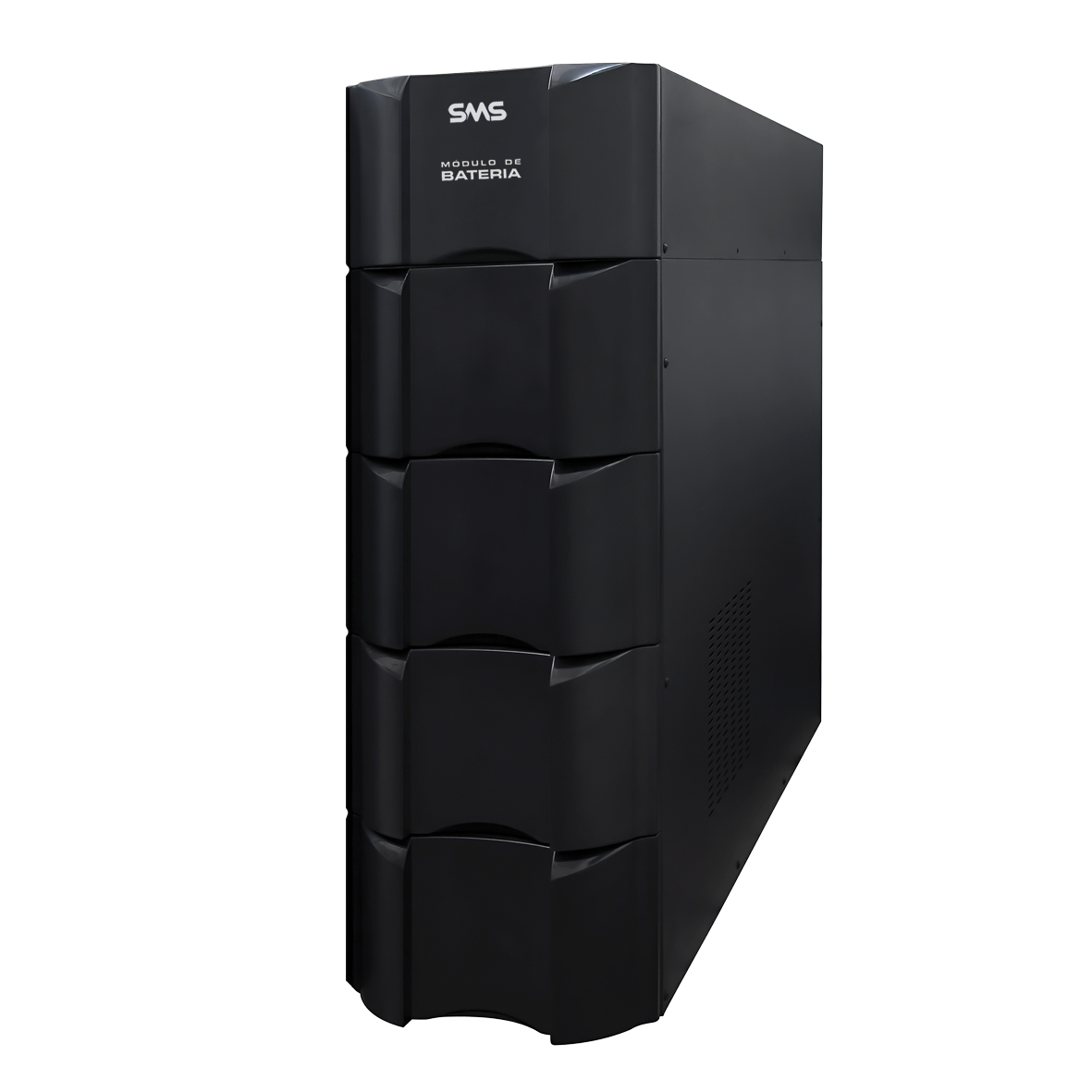 Composto por 16 x baterias livres de manutenção de 12V/40Ah, gabinete metálico em formato Torre e cabos para conexão. Permite fácil conexão para a expansão do tempo de autonomia do nobreak (UPS).